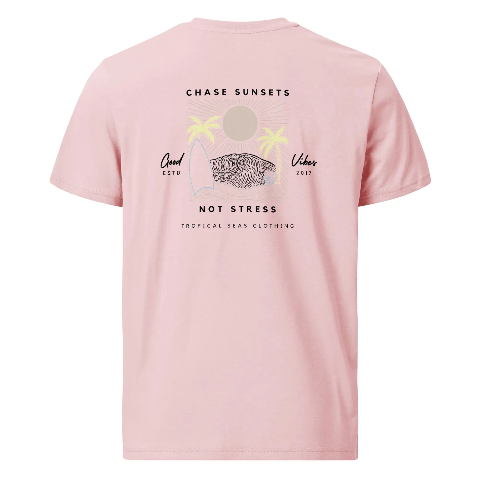 Indulge in the ultimate comfort with our "Chase Sunsets, Not Stress" organic cotton t-shirt by Tropical Seas Clothing. Crafted from 100% organic ring-spun cotton, this darling tee is not just a garment; it's an eco-friendly ode to the fabric of our lives. The 5.3 oz/yd² (180 g/m²) fabric weight offers a luxurious feel, while the medium fit and set-in sleeves ensure a cozy and stylish silhouette. Experience the perfect blend of sustainability and style, adorned with a 1 × 1 rib collar and wide double-needle topstitch on sleeves and bottom hems. Embrace fashion that cares for both you and the environment - it's a win-win for everyone.